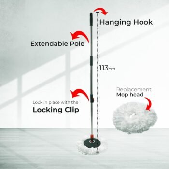 - Telescopic Handle (115 cm): Adjustable handle for easy access to tight spaces and comfortable cleaning.