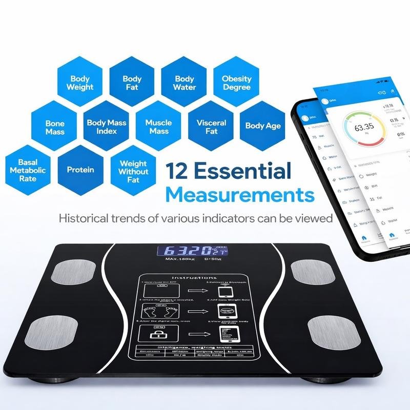 Bluetooth Smart BMI Digital Bathroom Scale 180kg Wireless Weight Scales for Health Monitoring