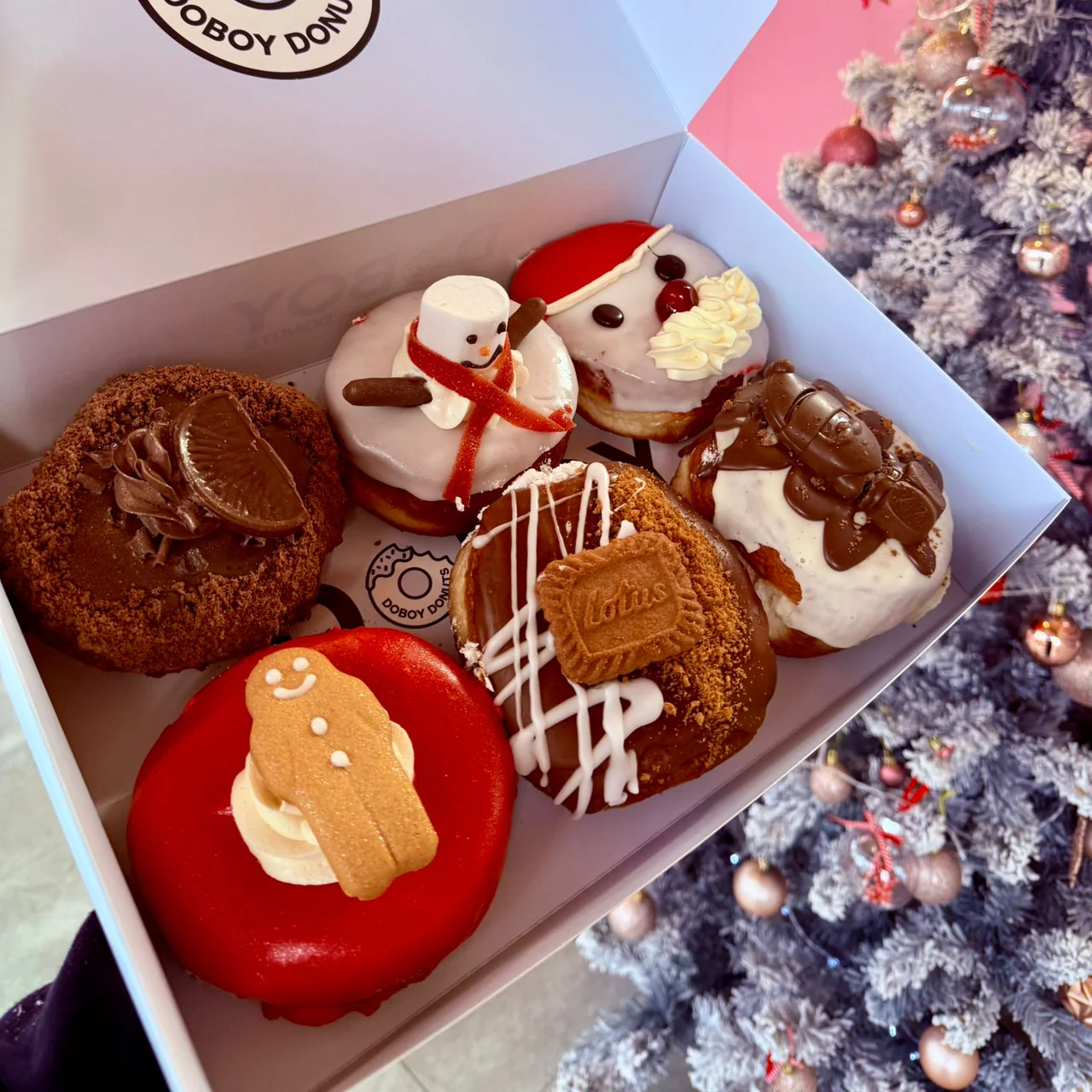 The Christmas Special Donut Box brings togetherย five limited-edition Christmas creationsย made just for the holiday season, plus one of our bestselling Doboy classics to round things off perfectly.