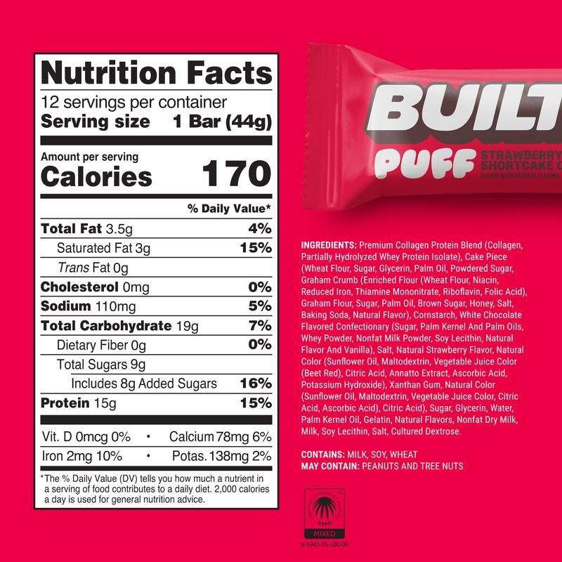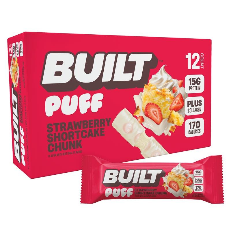 Love these BUILT PUFF bars! Strawberry Shortcake is my new favorite. Convenient, tasty, and keeps me full. 12 sticks are such good value.