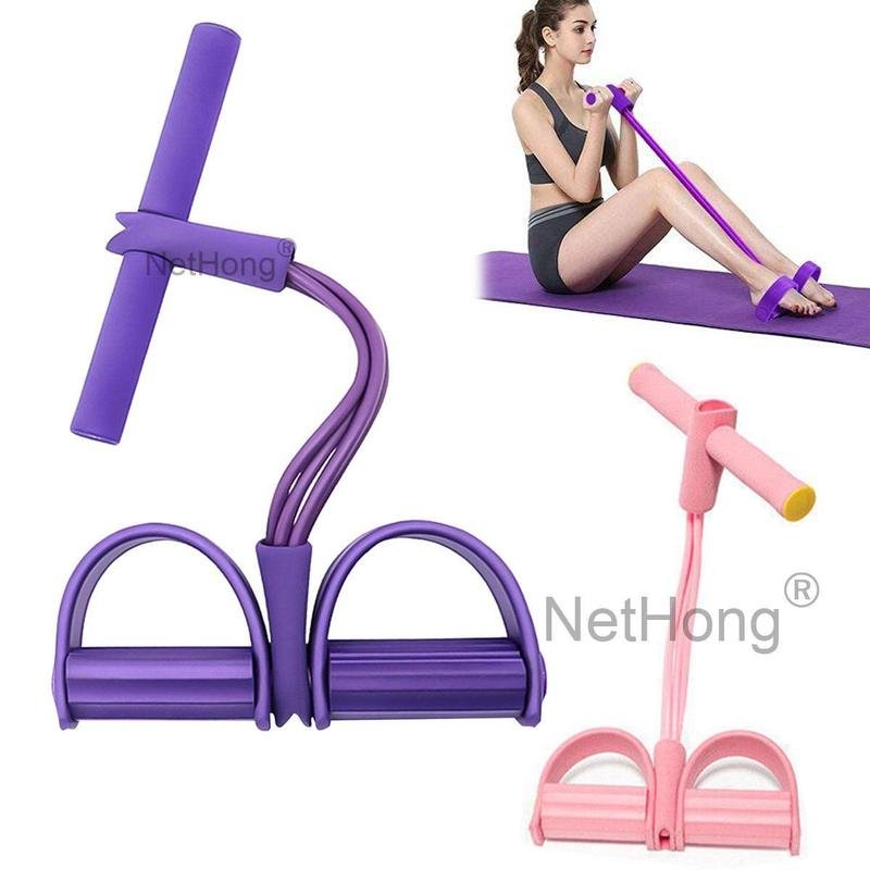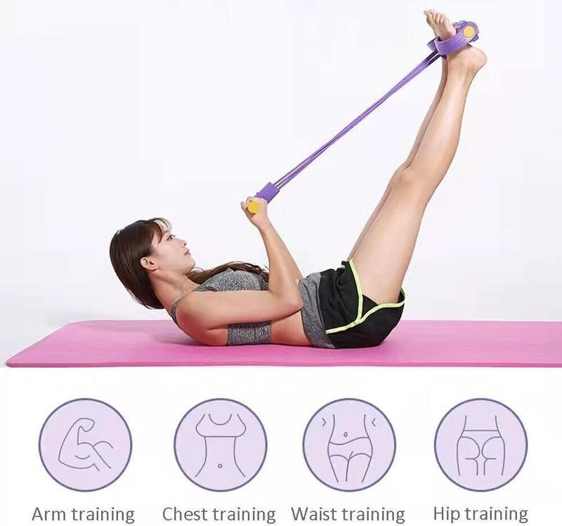 Elastic Fitness Sport Tension Rope Abdominal Exerciser Tension Rope, 4-Tube Elastic Yoga Pedal Puller Resistance Band, Natural Latex Tension Rope Fitness Equipment, for Abdomen/Waist/Arm/Leg Stretching Slimming Training pedal puller stretch