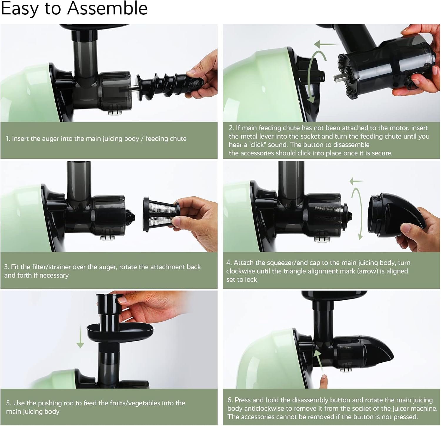 JOCUU ZM1503 Masticating Juicer Attachment Kit with Main Body, Spiral Auger, Filter, Feeding Chut and End Cup Included, Made from Premium BPA Free Materials (Acc 06)