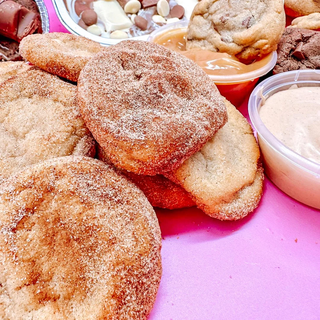 Wheatflour (WHEAT) (With Added Calcium, Iron, Niacin, Folic acid, Thiamin), Sugar, Butter (cream (MILK), Salt)., Light Brown Sugar (Sugar Cane, Cane Molasses)., White Chocolate 9% (Sugar 46.5%, Cocoa Butter 29.5%, Whole Milk Powder (MILK) 23.5%, Emulsifier: Soya Lecithin (SOYA) <1%, Natural Vanilla Flavouring <1%)., Egg (EGG), Inverted Sugar Syrup, Raising Agent: Sodium Hydrogen Carbonate E500, Salt (Salt, Anti-caking Agent (Sodium Ferrocyanide),. Churro sugar (sugar, cinnamon).