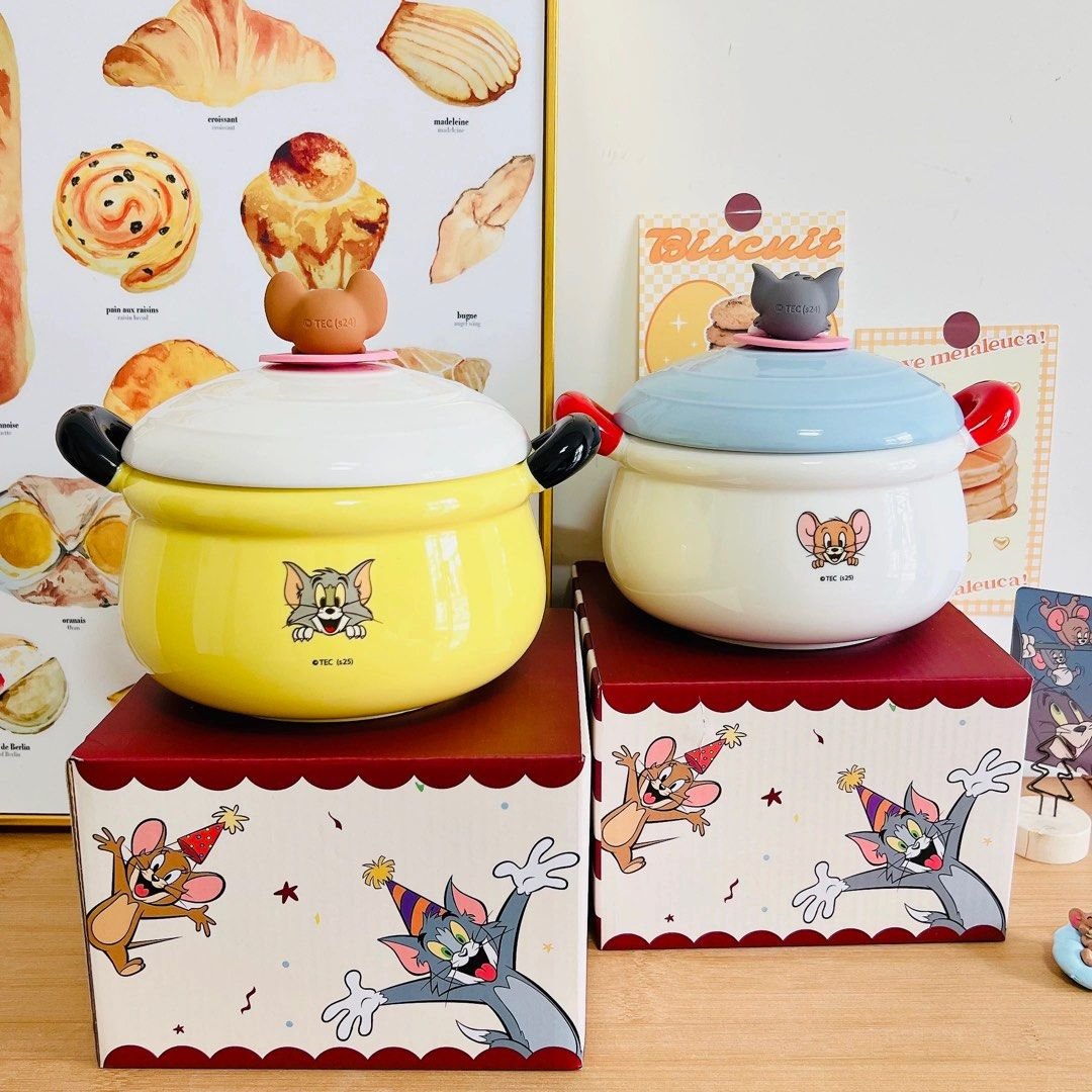 Soft color schemes (yellow/white + contrasting handles), smooth ceramic texture, and even the packaging has Tom & Jerry party illustrations—so cute it works as decor too!